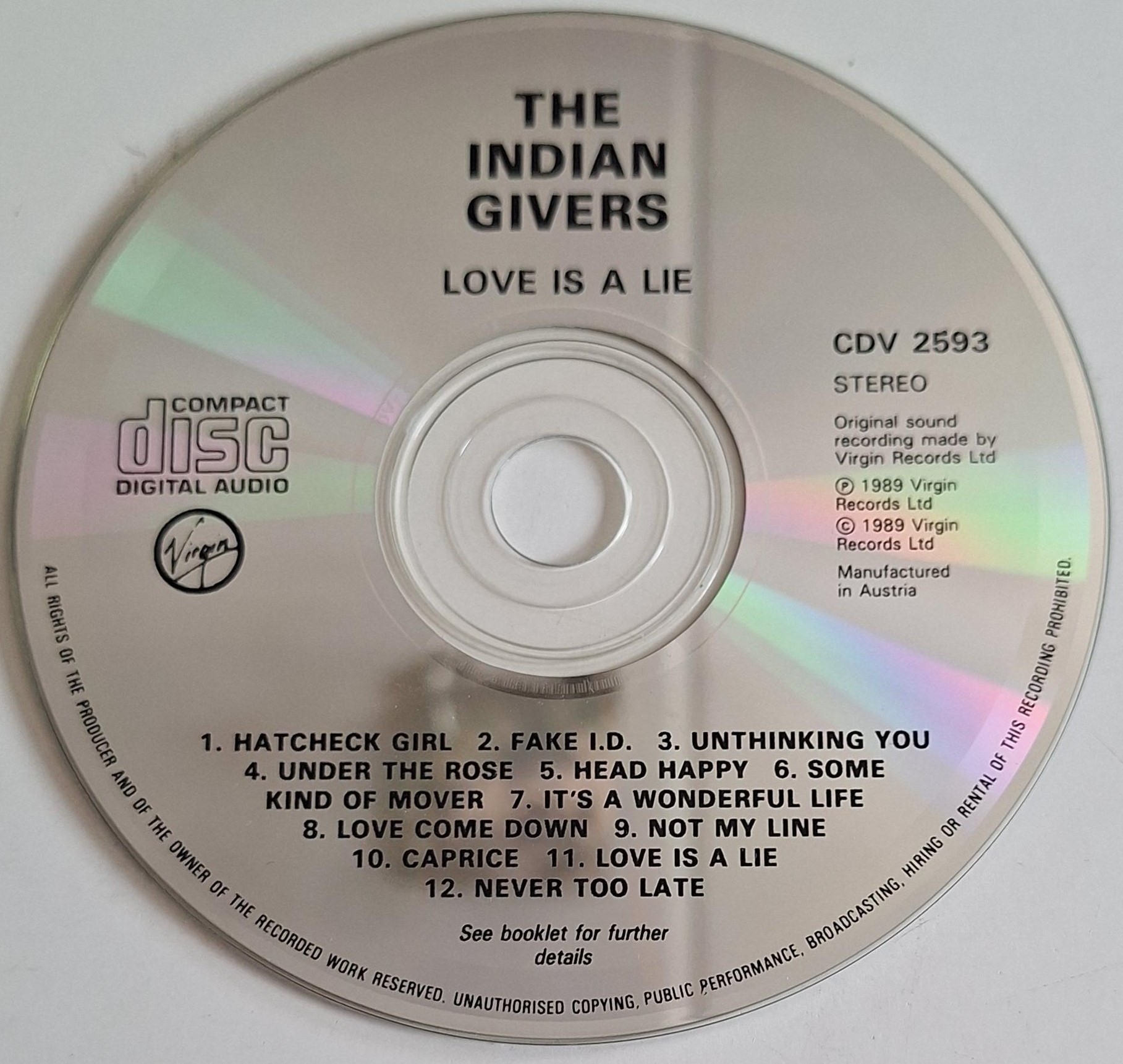 Label: Virgin ‎– CDV 2593, Virgin ‎– CDV2593