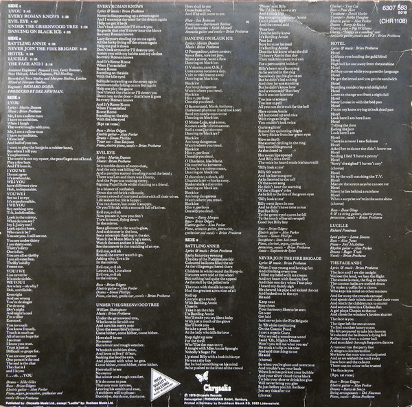 Label: Chrysalis ‎– 6307 583, Chrysalis ‎– CHR 1108