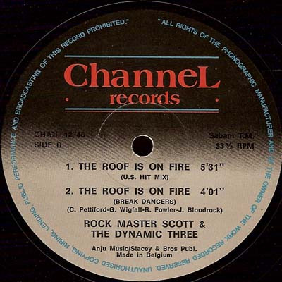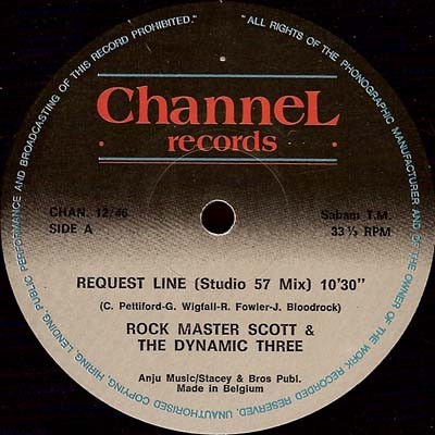 Rock Master Scott And The Dynamic Three ‎– Request Line (Studio 57 Mix) / The Roof Is On Fire (U.S. Hit Version)